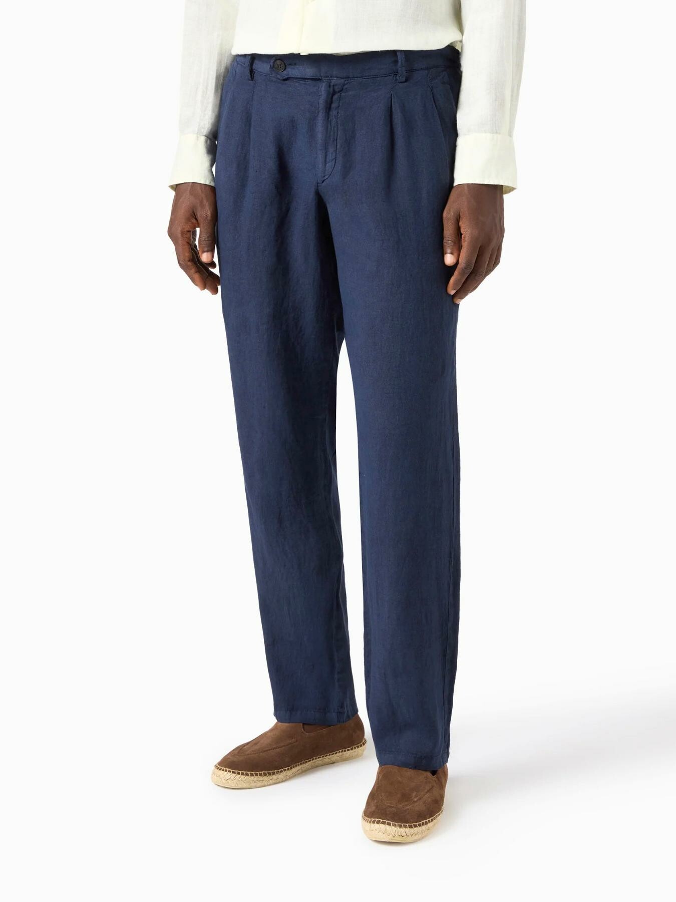 Mc2 Saint Barth – PANTALONE HAVIER LUNGO IN PURO LINO BLU NAVY