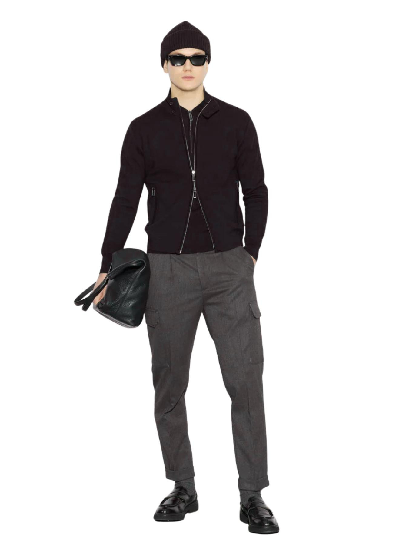 Giubbotto in maglia da uomo color blu navy della collezione AI25 firmata Paolo Pecora Milano. Realizzato in tessuto tecnico e caldo, questo capo combina la struttura di un giubbotto con la morbidezza della maglieria. Chiusura full zip con doppio cursore, colletto alto con bottoni e tasche laterali con zip per una funzionalitร elevata e un look pulito e contemporaneo. Perfetto per affrontare la stagione fredda con uno stile raffinato e casual allo stesso tempo. Un capo versatile, ideale per la quotidianitร urbana, rifinito con cura sartoriale.