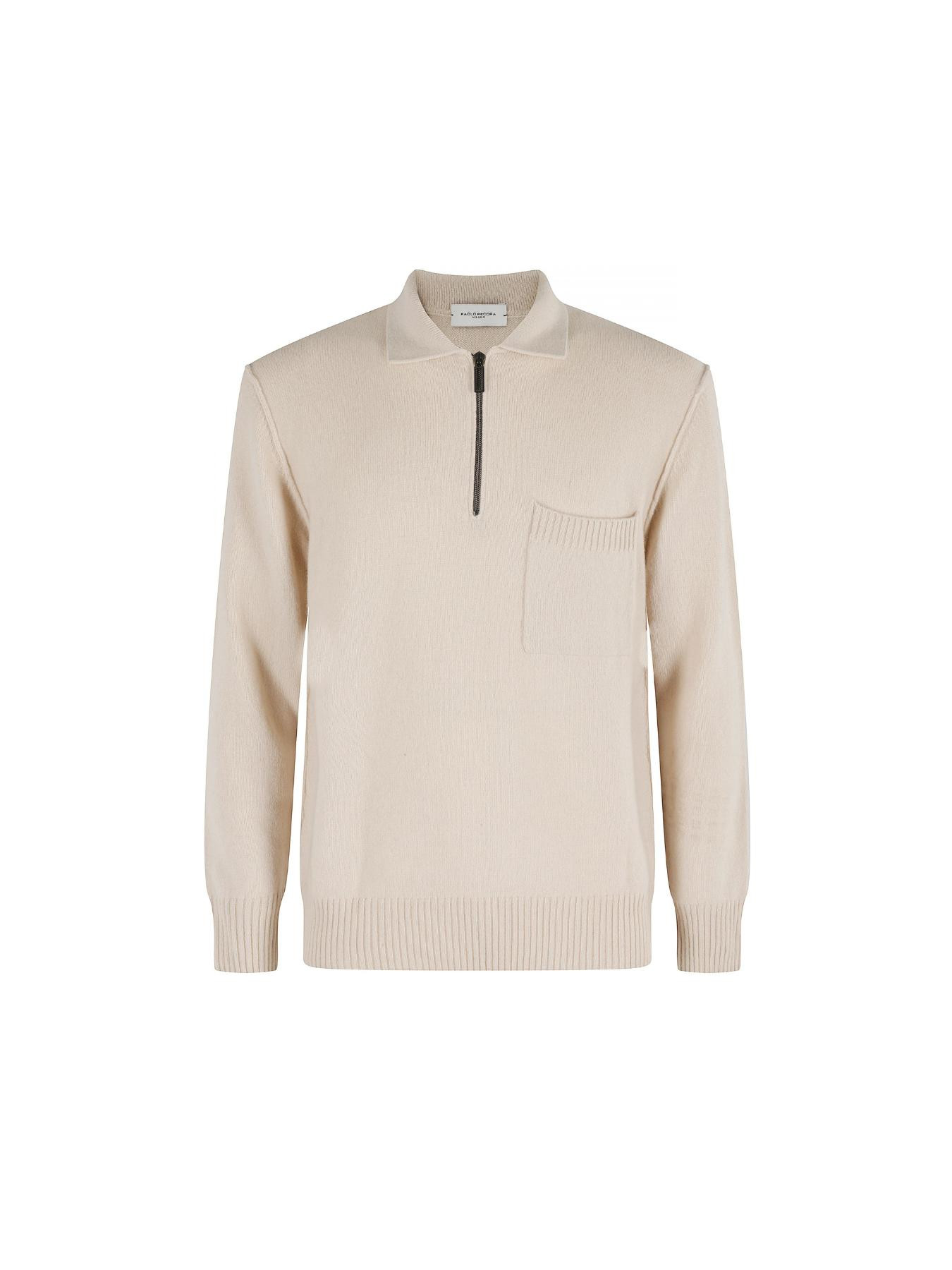 Maglia polo-Paolo Pecora-Color ecrรน-Manica lunga-Colletto classico-Girocollo con cerniera-Taschino sul petto