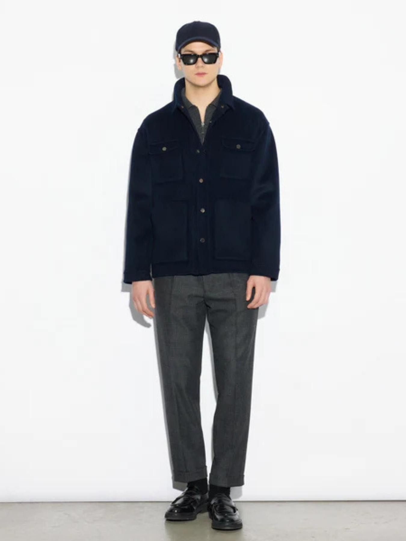 Pantalone chino in tessuto Principe di Galles con pinces frontali e tasche applicate sul retro. Il design sartoriale con piega centrale, risvolto al fondo e passanti per cintura con dettaglio metallico unisce eleganza classica e attitudine contemporanea. Il motivo a quadri discreto e raffinato valorizza il capo senza eccessi, rendendolo ideale sia per abbinamenti formali sia per look smart casual.