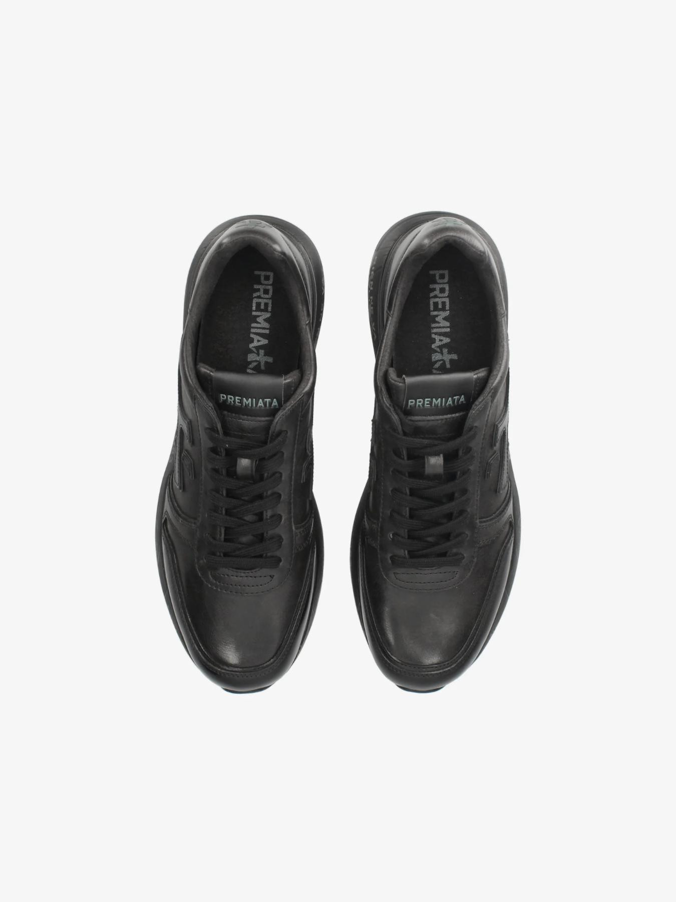 Sneakers Mick in mix di materiali e pellami di qualitร . La scarpa รจ realizzata nella tonalitร del nero per uno stile casual. L’iconica silhouette รจ arricchita dal logo Premiata.