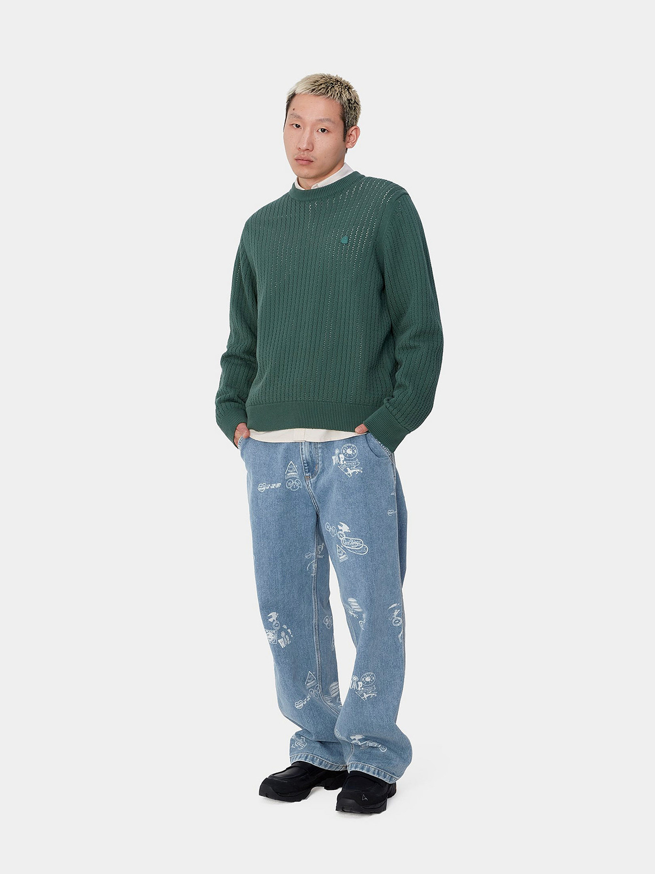 Gli Stamp Pant sono un modello a cinque tasche realizzato in denim di cotone pesante e presentano una stampa allover. Il capo รจ inoltre caratterizzato da vestibilitร ampia, gamba affusolata e vita normale. I pantaloni sono inoltre stati sottoposti a lavaggio con pietre abrasive per maggior morbidezza e un particolare aspetto leggermente consunto. Sul dietro compare unโetichetta quadrata in pelle sintetica.