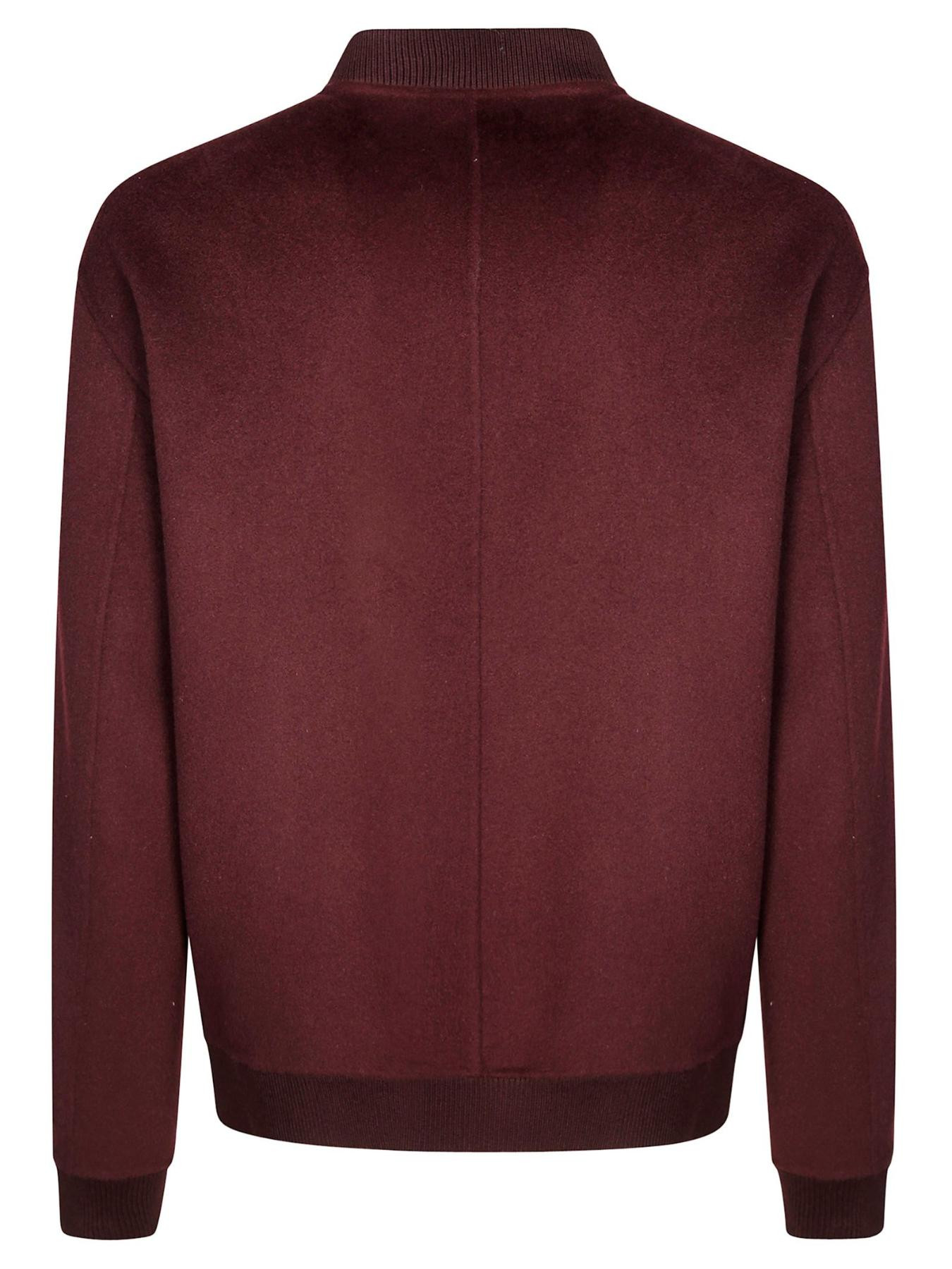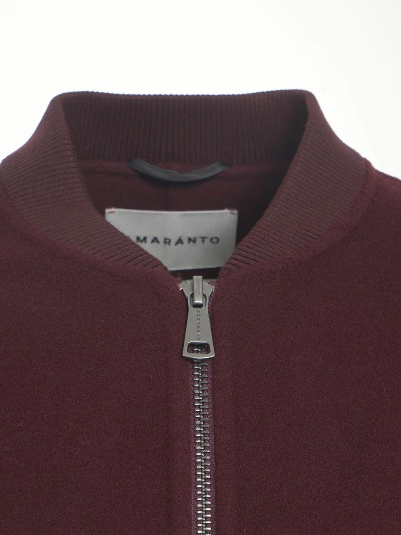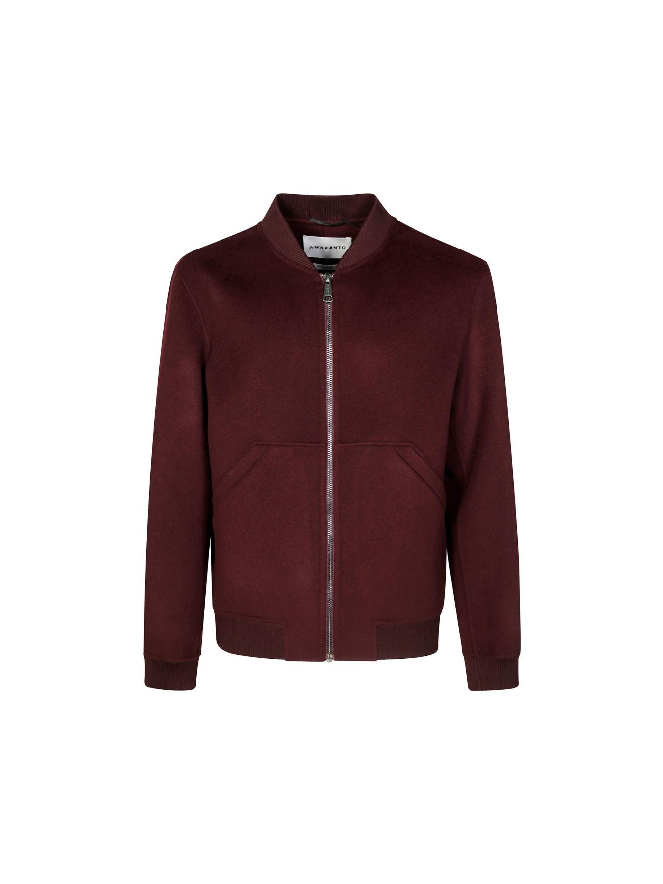 Giacca in lana bordeaux con chiusura con zip, colletto a punta, tasche frontali, orlo a coste, maniche lunghe