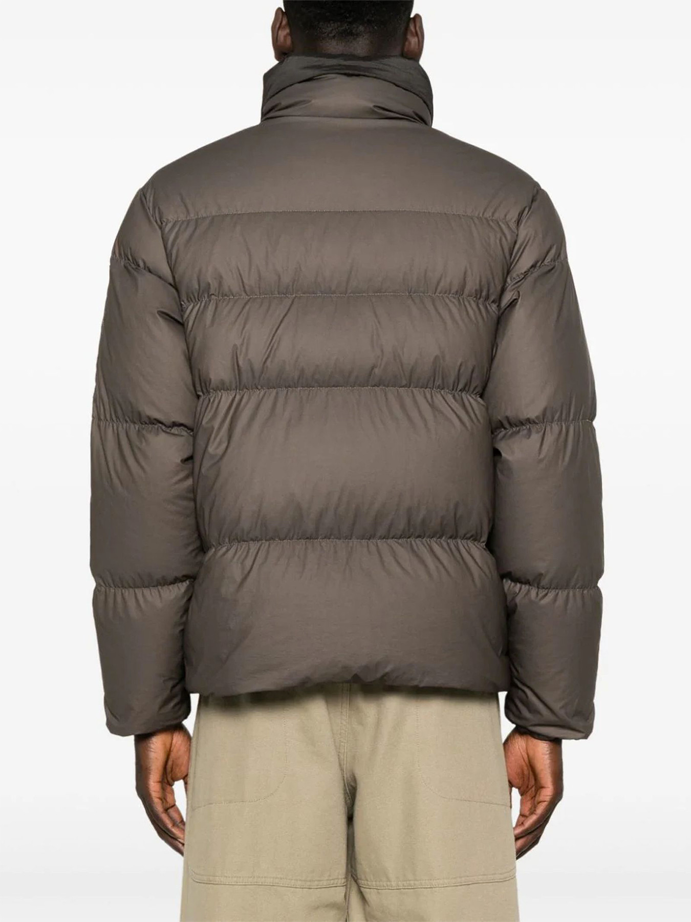 Piumino realizzato in Bi-TM, un nylon 20 denari con spalmatura in poliuretano velour opaca. Tinto in capo con trattamento anti-goccia.