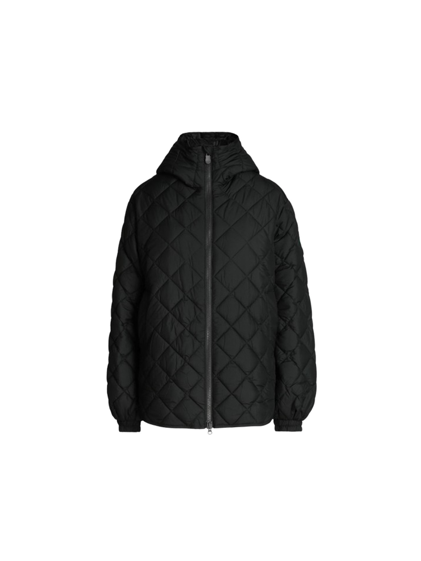 Herrea รจ un parka corto trapuntato con motivo a rombi. Dotato di cappuccio, fondo manica con elastico e tasche a filetto sui lati, offre il giusto compromesso tra comfort e protezione. Chiuso da una zip a doppio cursore personalizzato, presenta stampa all’interno, bandierina sul fianco e logo in gomma sulla manica, tutti dettagli chiave della linea Recycled.