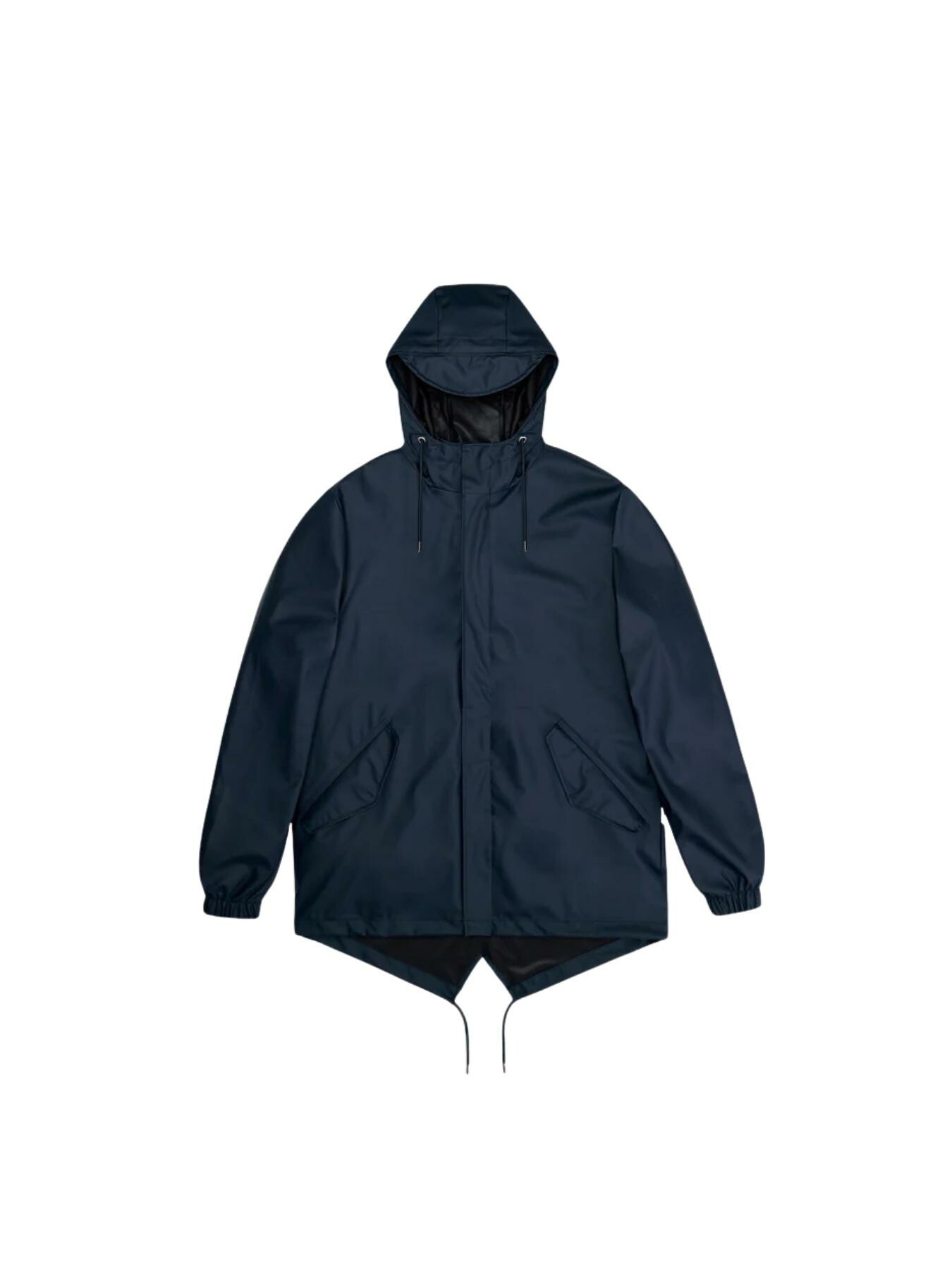 Il Fishtail Jacket รจ un impermeabile unisex. ร caratterizzato da un’estetica essenziale e dall’orlo a coda di pesce con coulisse.