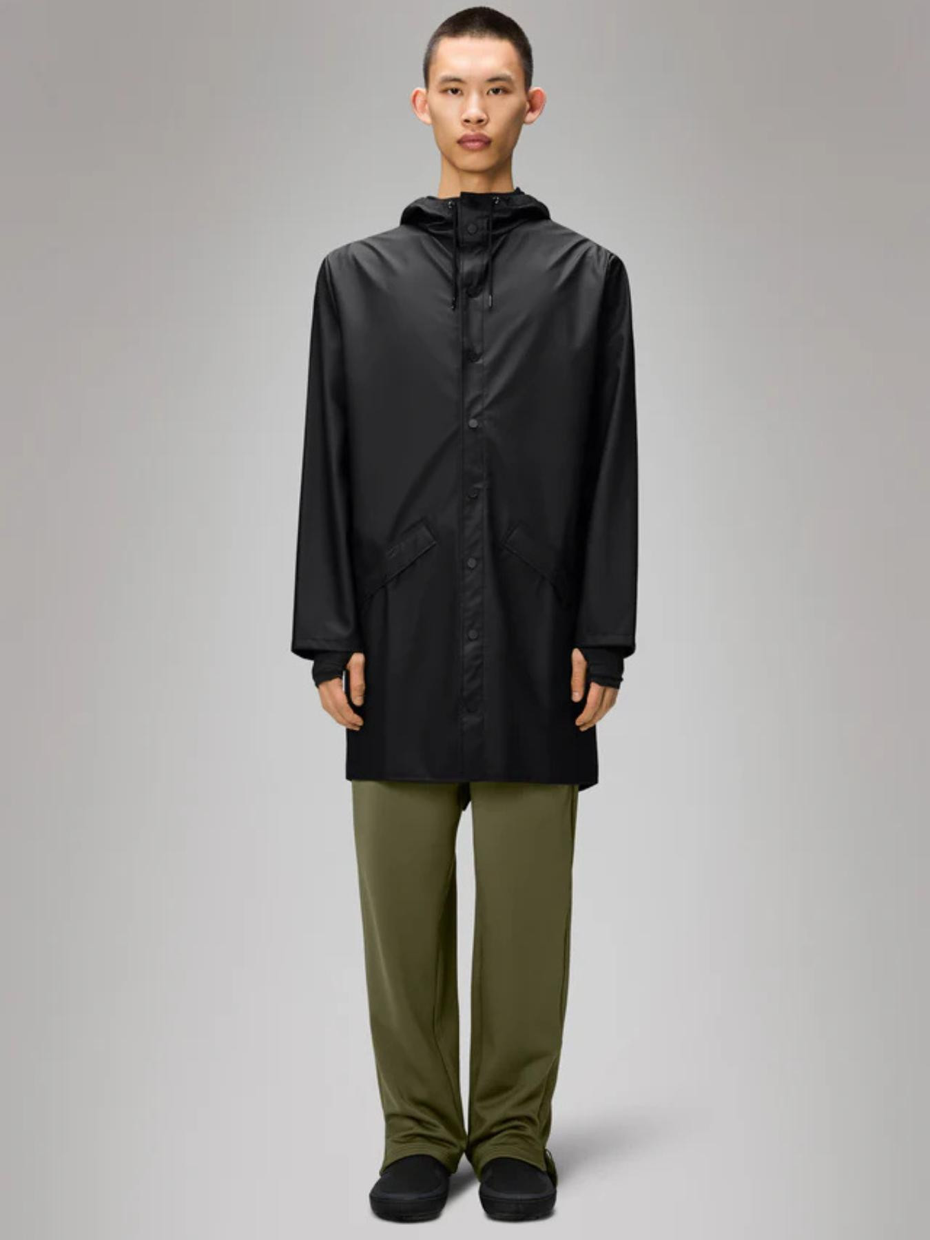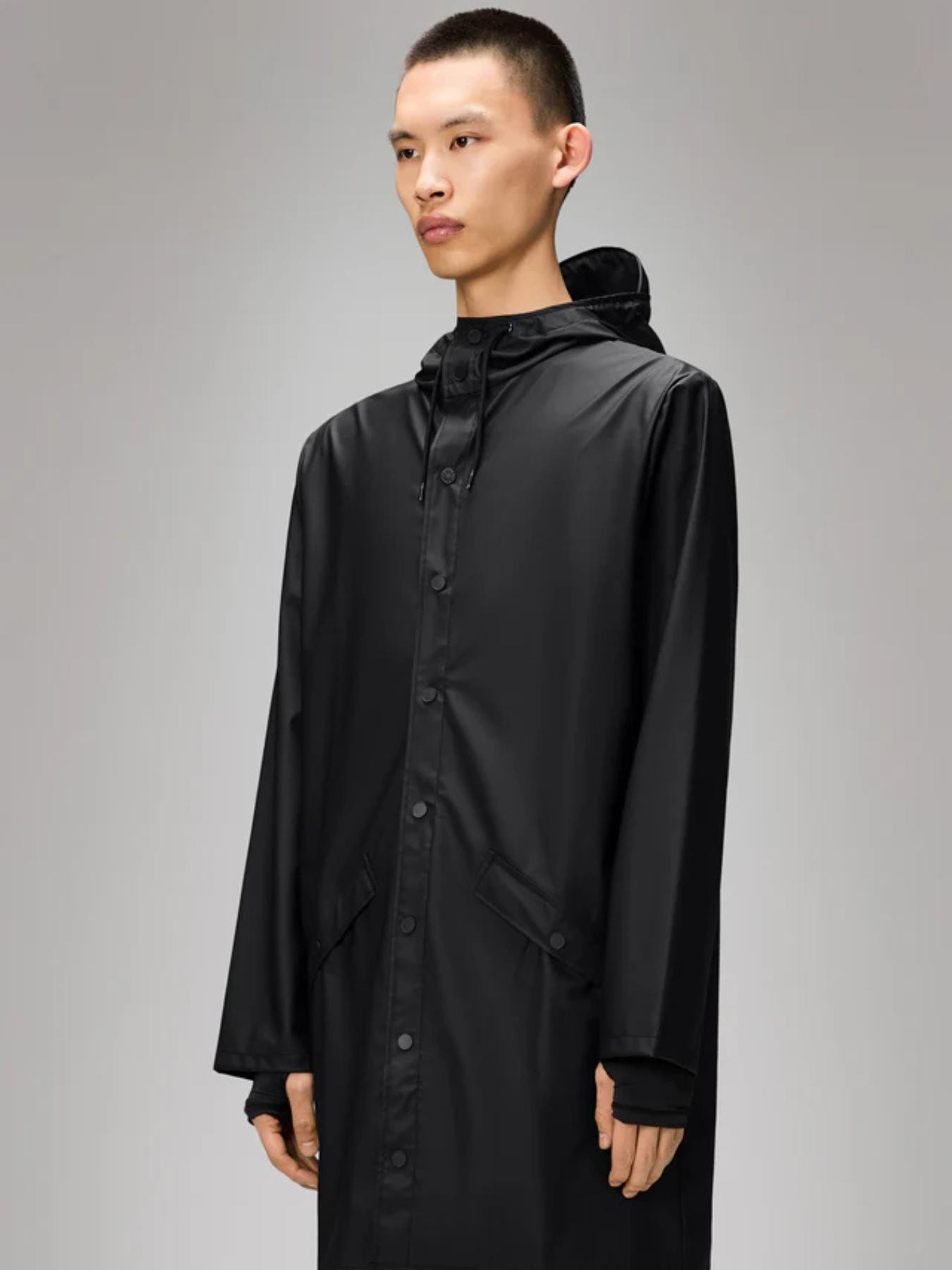 La Long Jacket รจ una giacca antipioggia unisex sempre attuale. ร caratterizzata da una silhouette minimalista e da un design lungo.