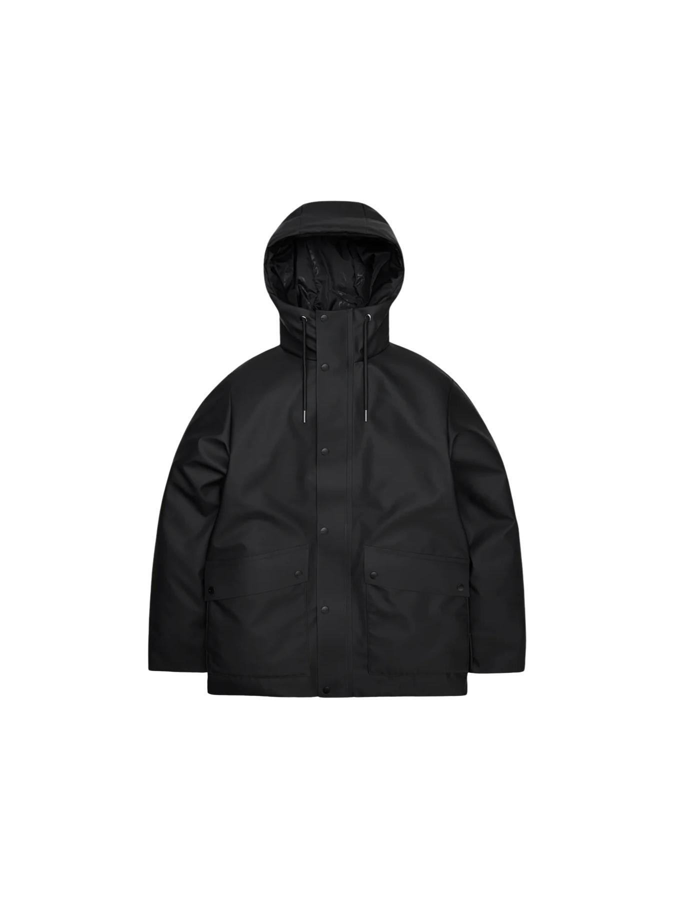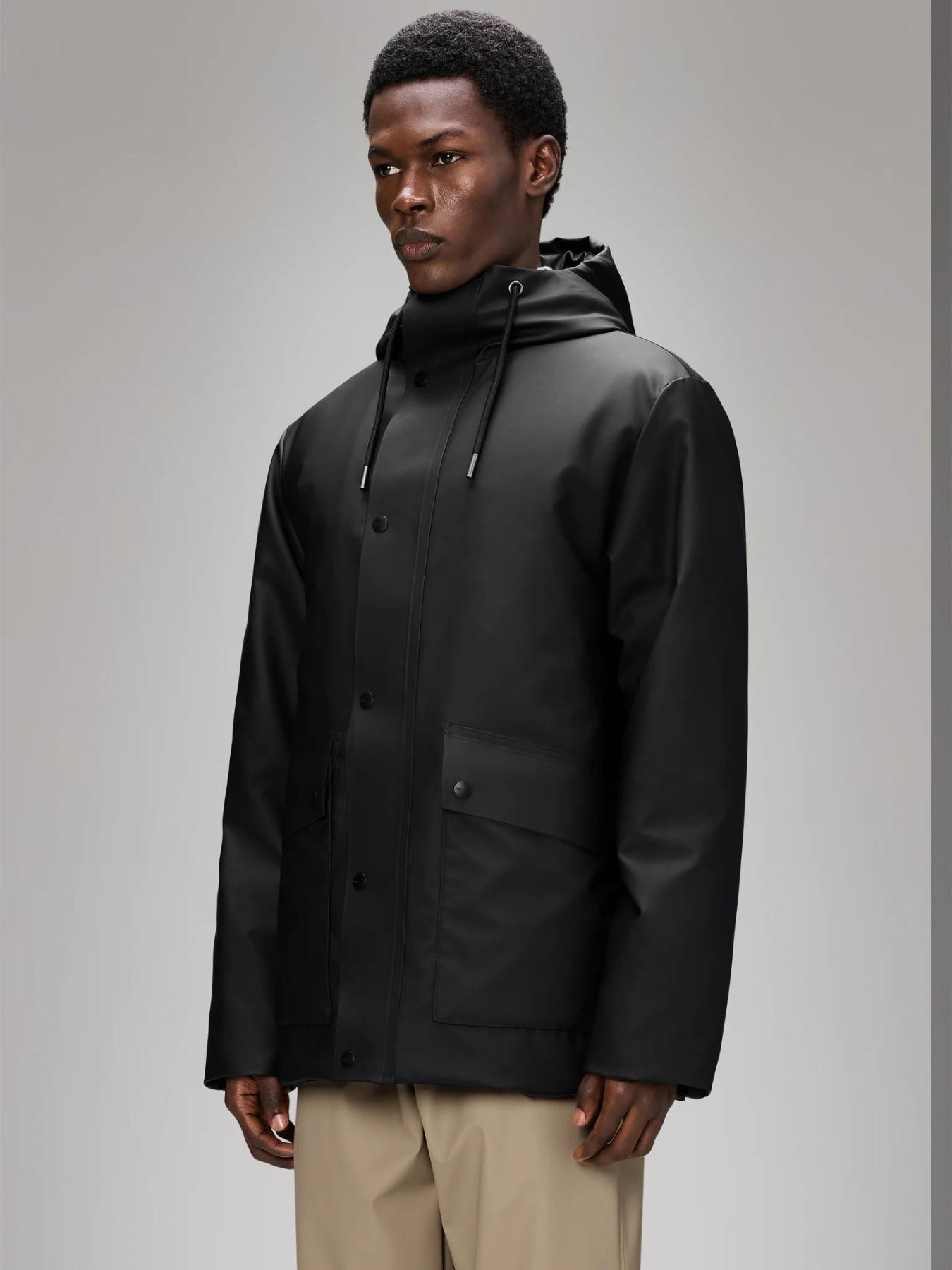 La giacca waterproof รจ realizzata con l’iconico tessuto PU di Rains, con una parte posteriore in tessuto forte e resistente. La mano รจ pulita, con un aspetto epurato e una sensazione liscia al tatto.