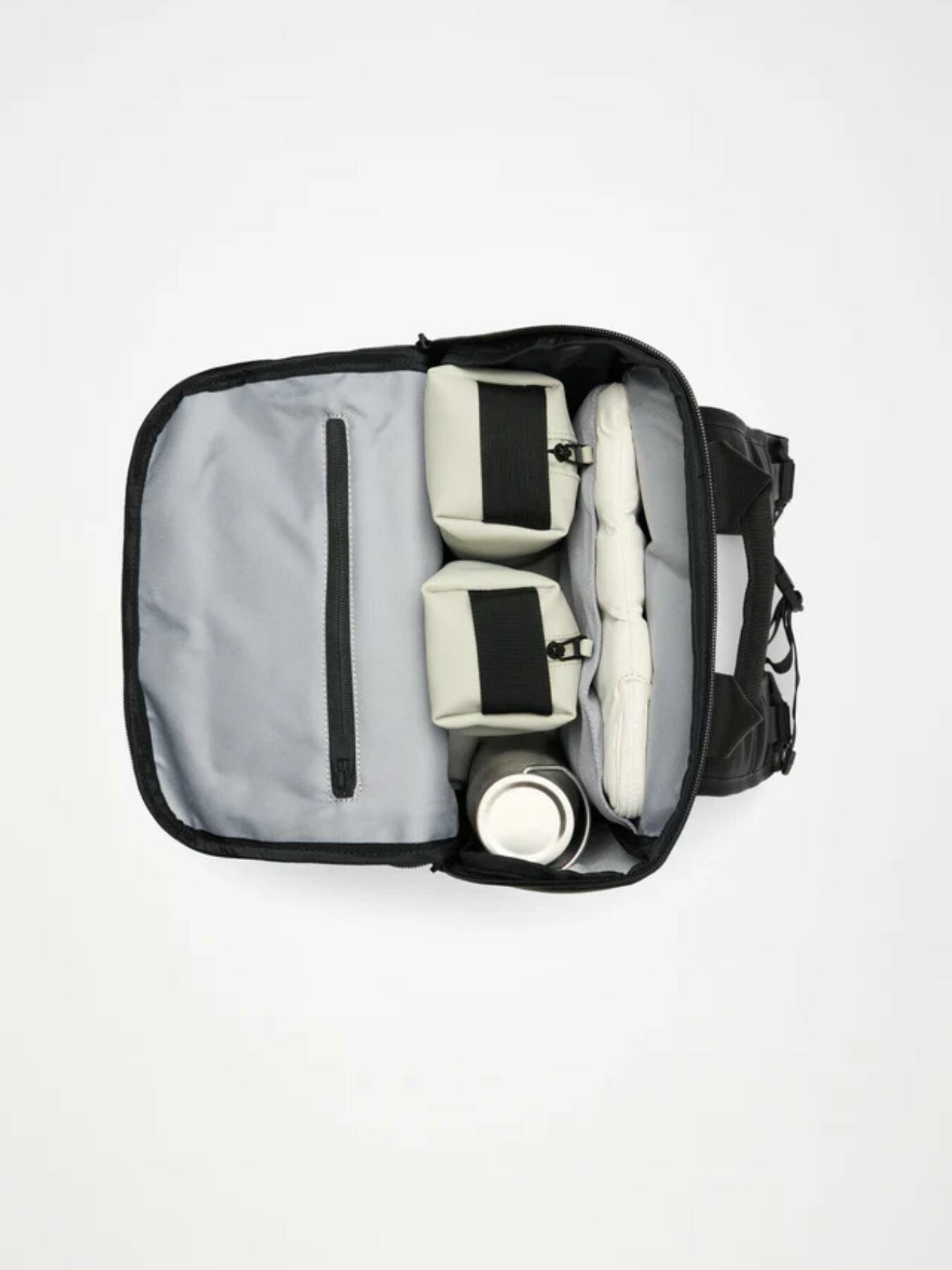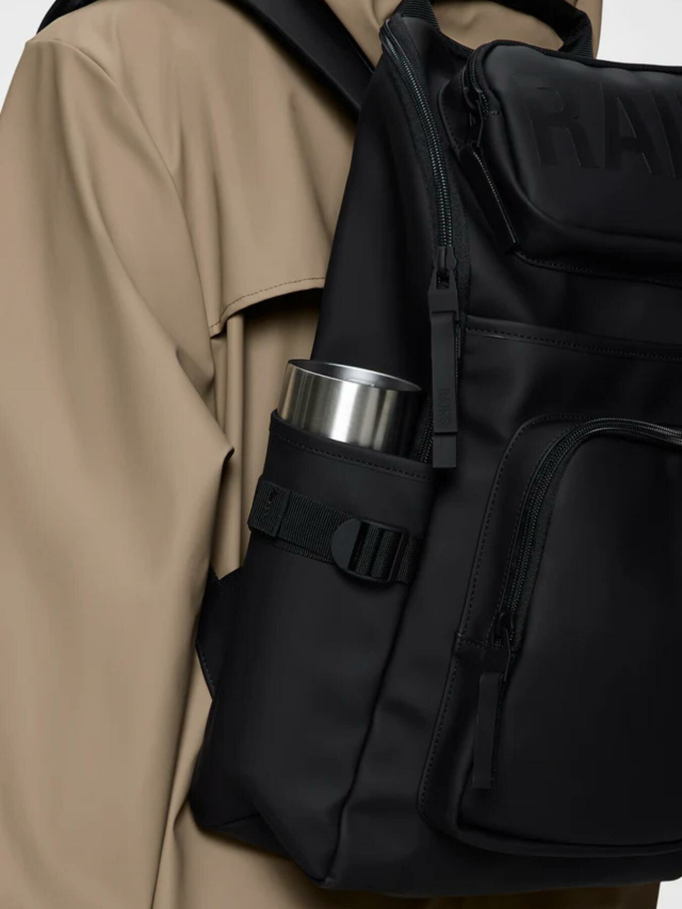 Texel Cargo Backpack รจ realizzato nel caratteristico materiale in PU impermeabile di Rains, sviluppato per garantire resistenza, durata e una finitura liscia.