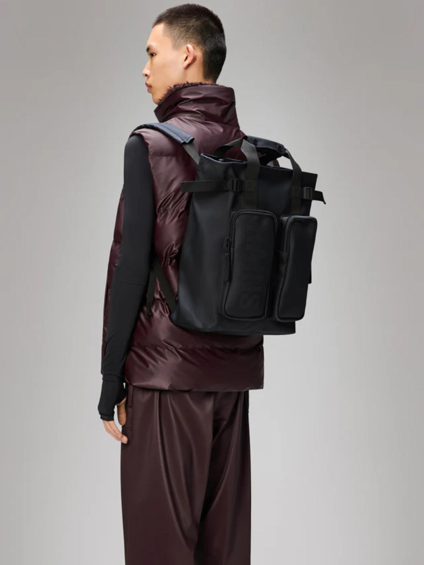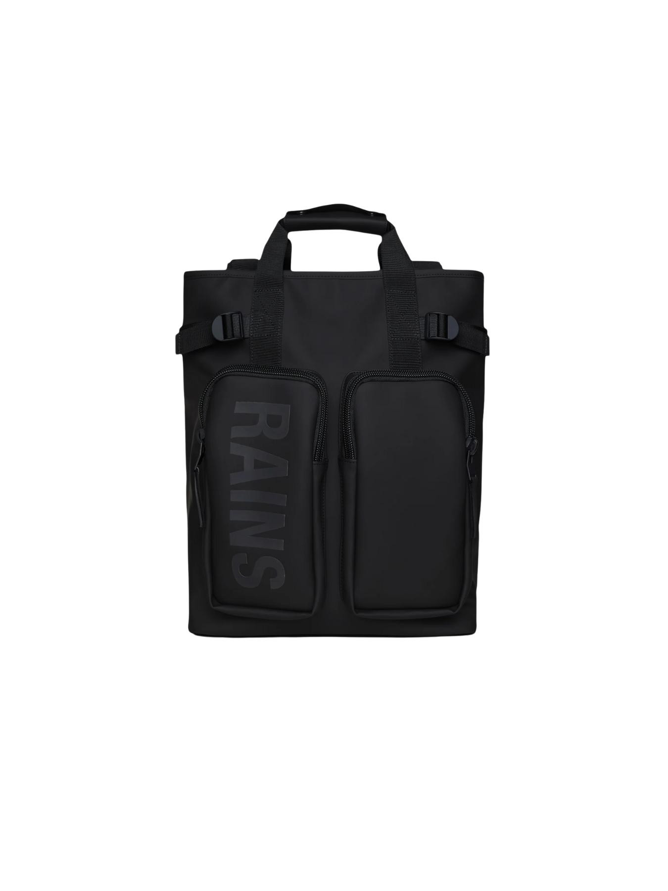 La Texel Tote Backpack รจ una borsa ibrida con tasca imbottita per laptop, pensata per i viaggi brevi. Il modello รจ realizzato nell’iconico tessuto impermeabile in PU di Rains.