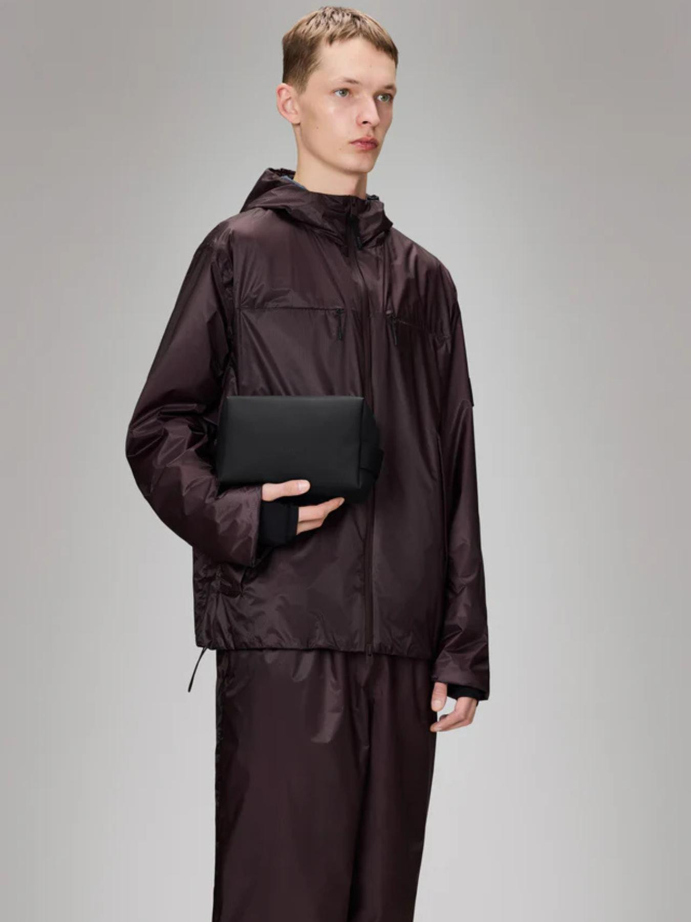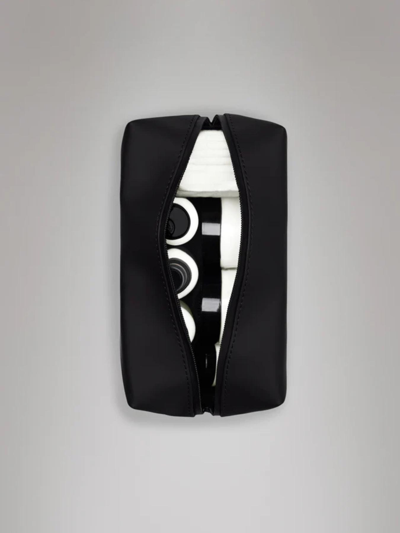 La Wash Bag Small รจ realizzata in tessuto PU impermeabile firmato Rains, progettato per essere robusto, duraturo e piacevole al tatto