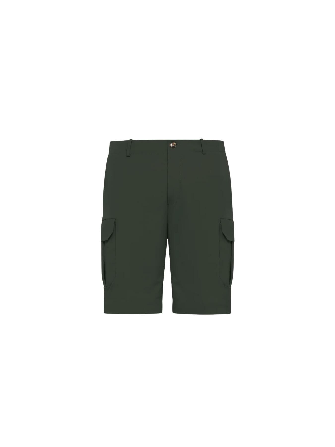 I bermuda cargo interpretano con eleganza lโ€™heritage militare attraverso uno stile essenziale e contemporaneo. Realizzati nellโ€™esclusivo tessuto elasticizzato SURFLEXยฎ, che combina agilitร , freschezza e comfort assoluto, si distinguono per il loro finissaggio super opaco che esalta i colori di stagione. Il modello di lunghezza media presenta la vita con passanti, impreziosita internamente dalla fascia e dalla bottoniera, entrambe stampate tono su tono con lโ€™esclusivo monogramma Razzle Dazzle. Sul davanti, la pulizia delle linee รจ ulteriormente sottolineata dalla pattina che cela la pregiata abbottonatura in corno e dalle tasche alla francese dotate di pratico tiretto elastico nella destra. Le tasche cargo a soffietto applicate sulla gamba e le tasche posteriori a filetto, sottolineate dal logo a microiniezione nero, completano questa creazione versatile e dinamica, perfetta per accompagnare con stile le avventure estive.