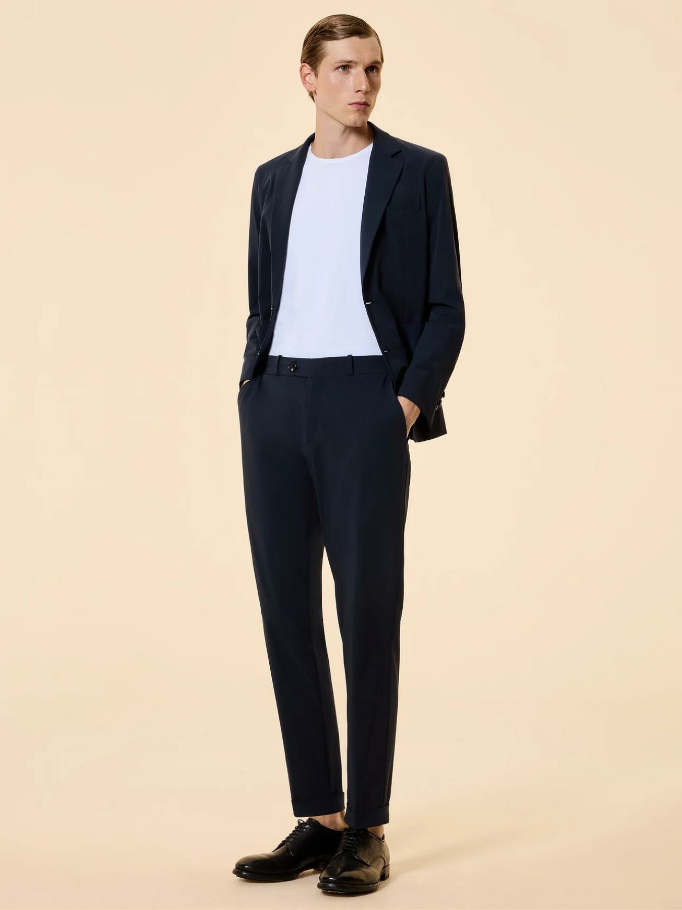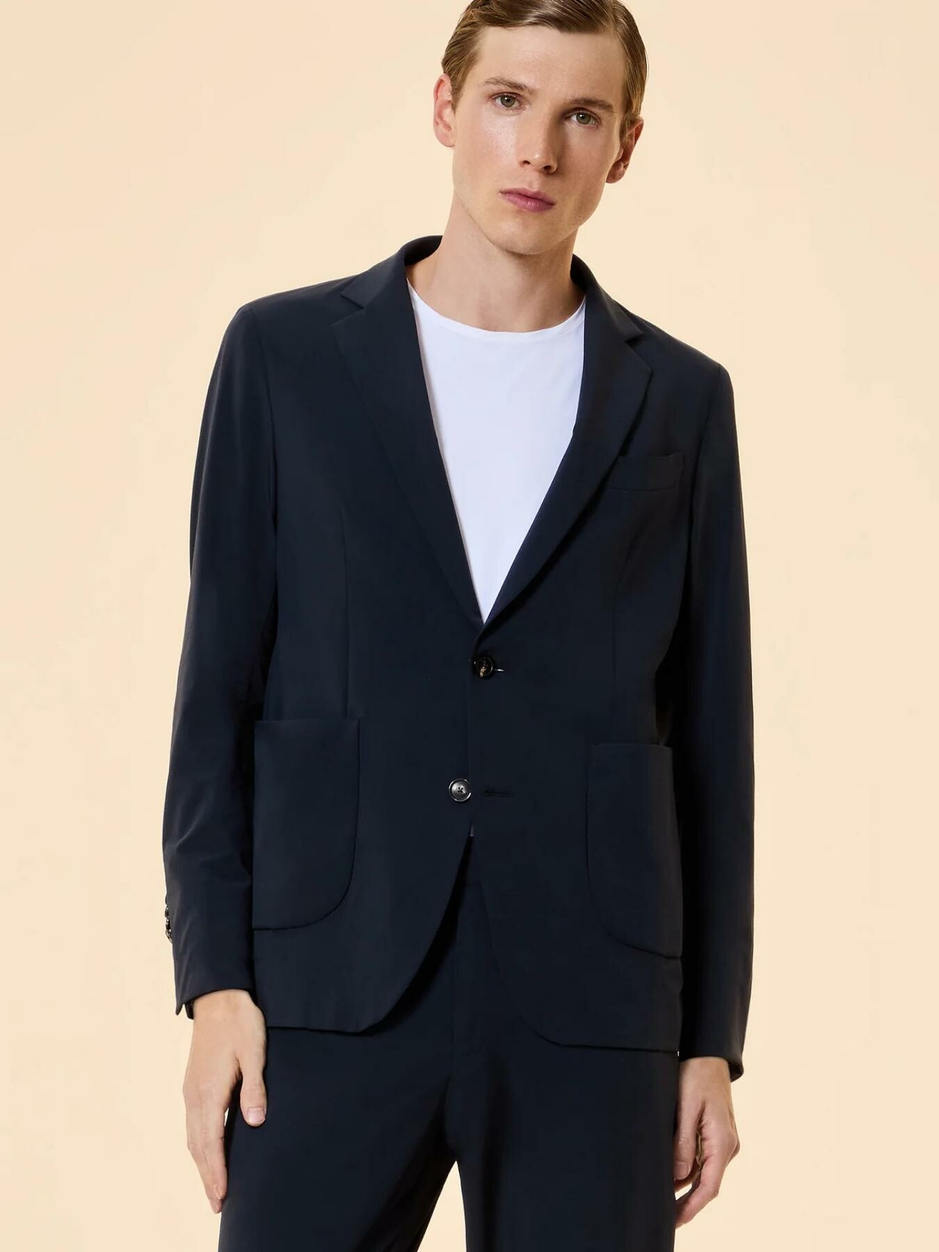Il blazer monopetto dal fit regolare รจ caratterizzato da unโeleganza fresca e sofisticata. Il tessuto tinta unita straordinariamente leggero offre il massimo del comfort nelle giornate estive. La modernitร del tessuto dialoga armoniosamente con i dettagli sartoriali che definiscono lโidentitร della giacca. I revers incorniciano il davanti chiuso da due pregiati bottoni in corno. Le tasche laterali a toppa e i quattro bottoni ai polsi, anchโessi in corno, ribadiscono il carattere classico del capo, mentre gli spacchi laterali assicurano libertร di movimento. Allโinterno, il taschino รจ valorizzato dallโinconfondibile doppio filetto arancione fluo e dallโiconica tag a cuore โMade with love, designed in Tuscanyโ. Abbinato ai Terzilight Chino Pant, il Terzilight Blazer compone un completo di raffinata modernitร , ideale per la giornata in ufficio e perfetto per accompagnare con stile le occasioni serali. Le qualitร antipiega ed easy care lo rendono inoltre un alleato prezioso nei viaggi di lavoro.