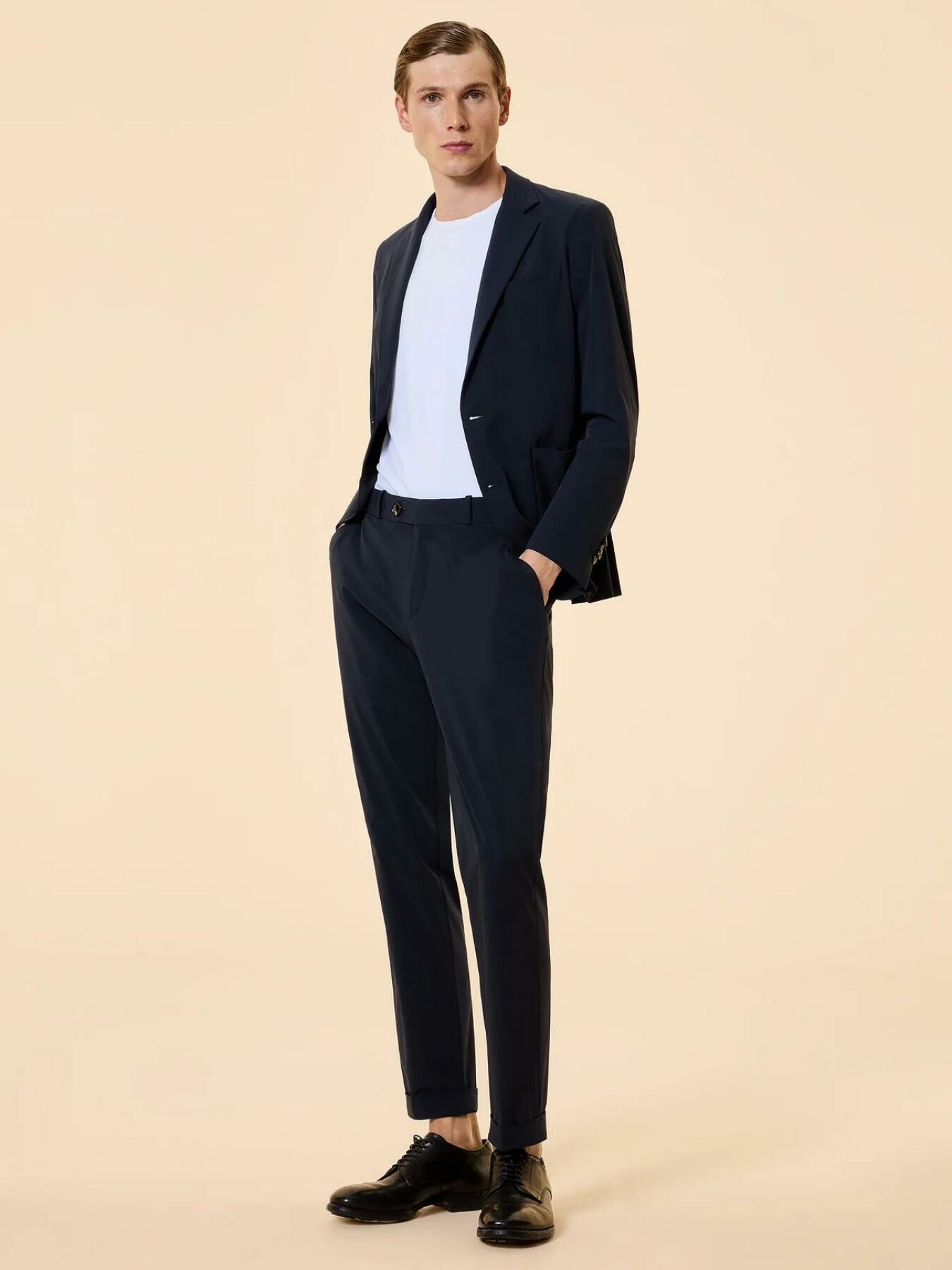 Le note sartoriali definiscono questi chino a vita regolare dal fit asciutto, progettati per offrire unโeleganza disinvolta nelle giornate piรน calde. Il tessuto elasticizzato, straordinariamente leggero, morbido al tatto e traspirante, assicura un comfort impeccabile senza rinunciare a uno stile ricercato. Le qualitร antipiega e no stiro rendono i pantaloni impeccabili in ogni situazione. La vita con passanti รจ impreziosita dalla fascia interna stampata nellโesclusivo monogramma Razzle Dazzle tono su tono ed รจ regolata da un cinturino con triplo bottone in corno. La zip frontale, nascosta dalla pattina, si accompagna alle tasche laterali alla francese e alle posteriori a filetto, rifinite dal logo a microiniezione nero. Terzilight Chino Pant รจ fresco e versatile, nel completare con naturale eleganza i look estivi per lโufficio e il tempo libero, perfetto in abbinamento a una camicia Oxford e al blazer Terzilight coordinato.