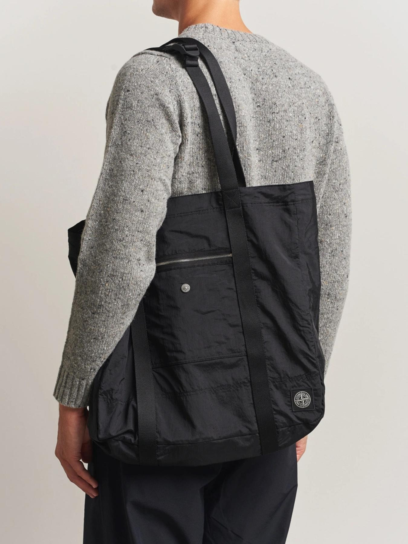 Borsa in Nylon Stone Island . Questo marchio italiano progetta indumenti utilizzando uno stile che unisce lโabbigliamento militare allโabbigliamento tecnico e da lavoro. Lโiconica rosa dei venti simboleggia la passione per il mare e la sperimentazione.