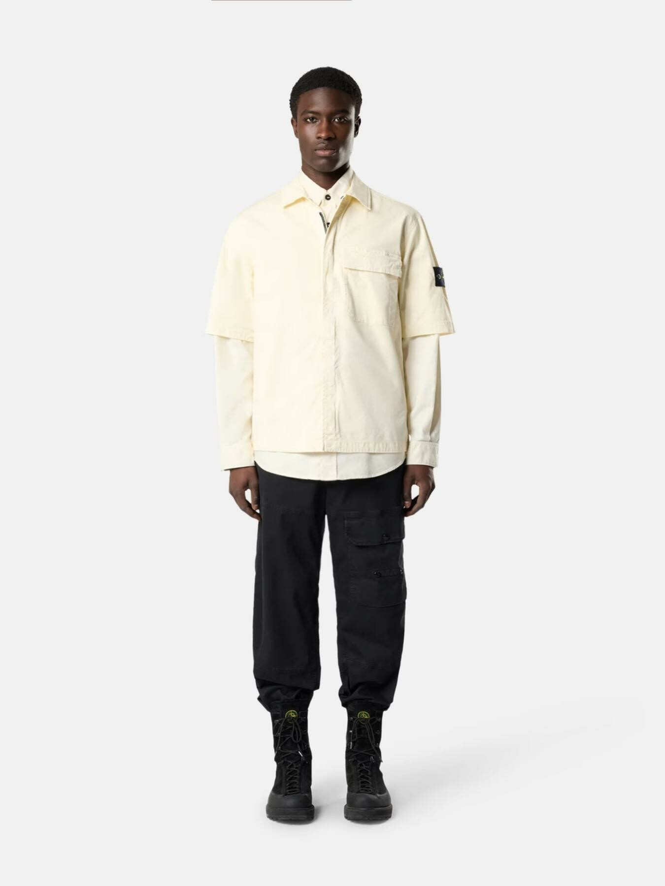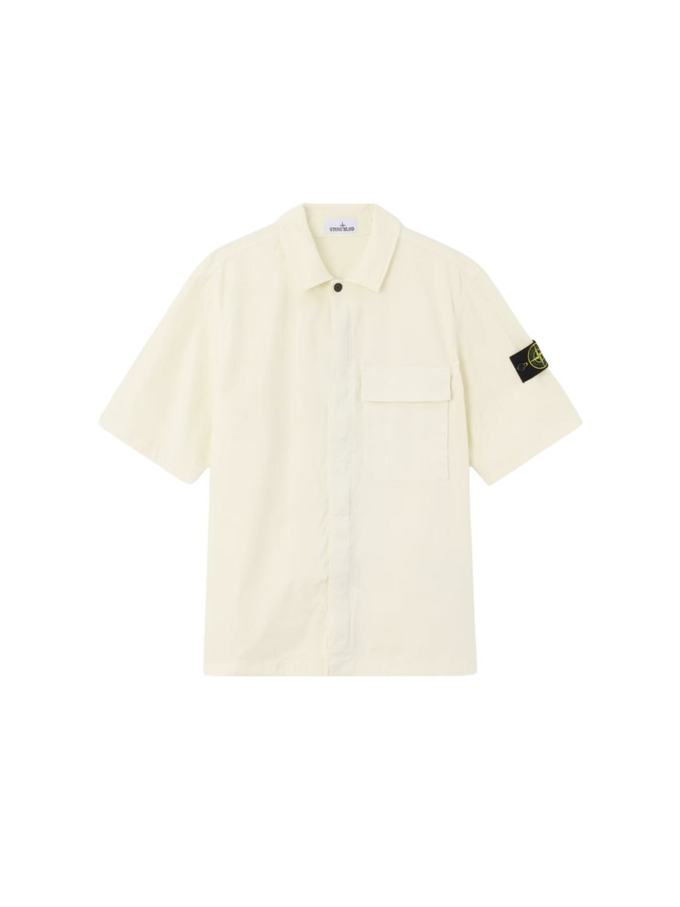 Stone Island – Camicia a maniche corte in twill di cotone biologico stretch