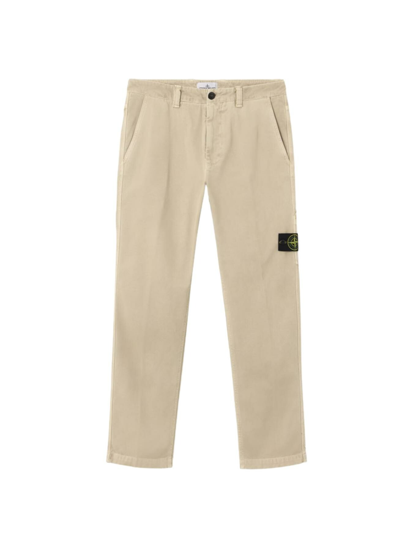 Pantalone in cotone biologico Panama. Modello tinto in capo con il trattamento โOLDโ, unโesclusiva tecnica di tintura e successivo scolorimento sul capo finito che gli conferisce un aspetto tridimensionale e leggermente vissuto