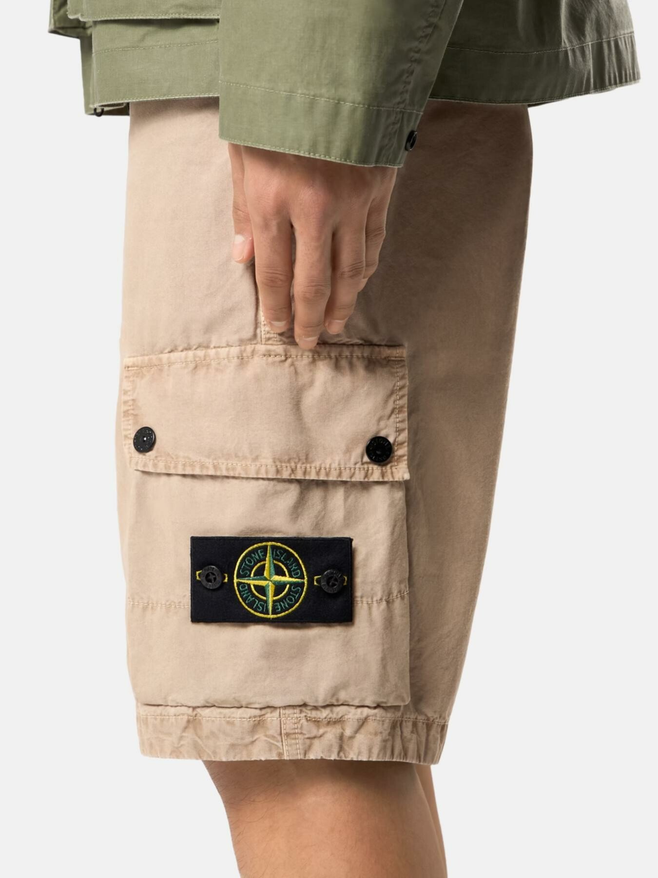 Stone Island – Shorts cargo in tela di cotone biologico spazzolato
