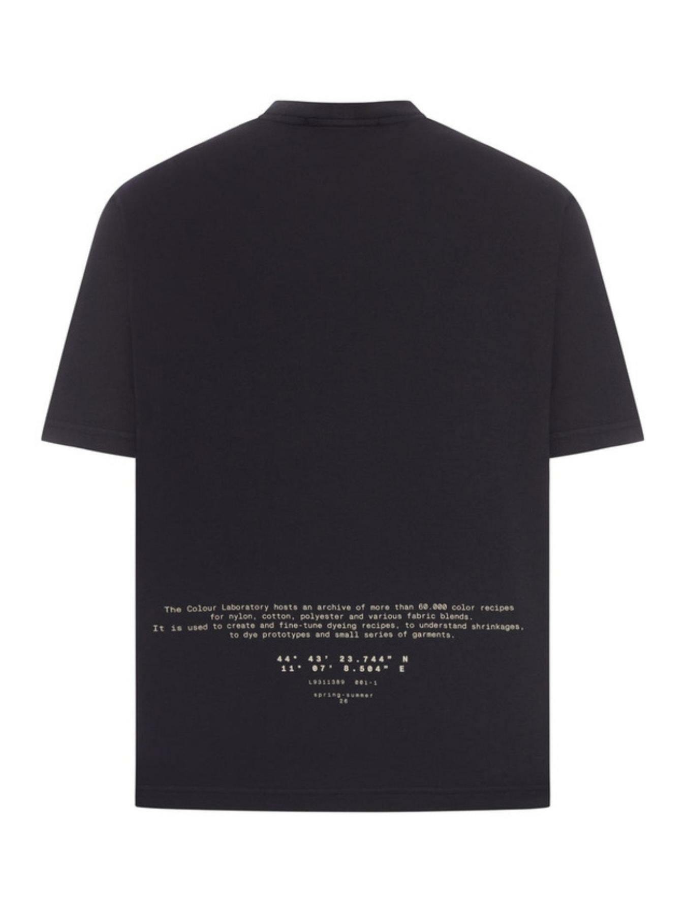 T-shirt a manica corta in jersey di cotone biologico con stampa logo Compass sul petto e scritta sul retro che richiama lo Stone Island Colour Laboratory. Modello tinto in capo.