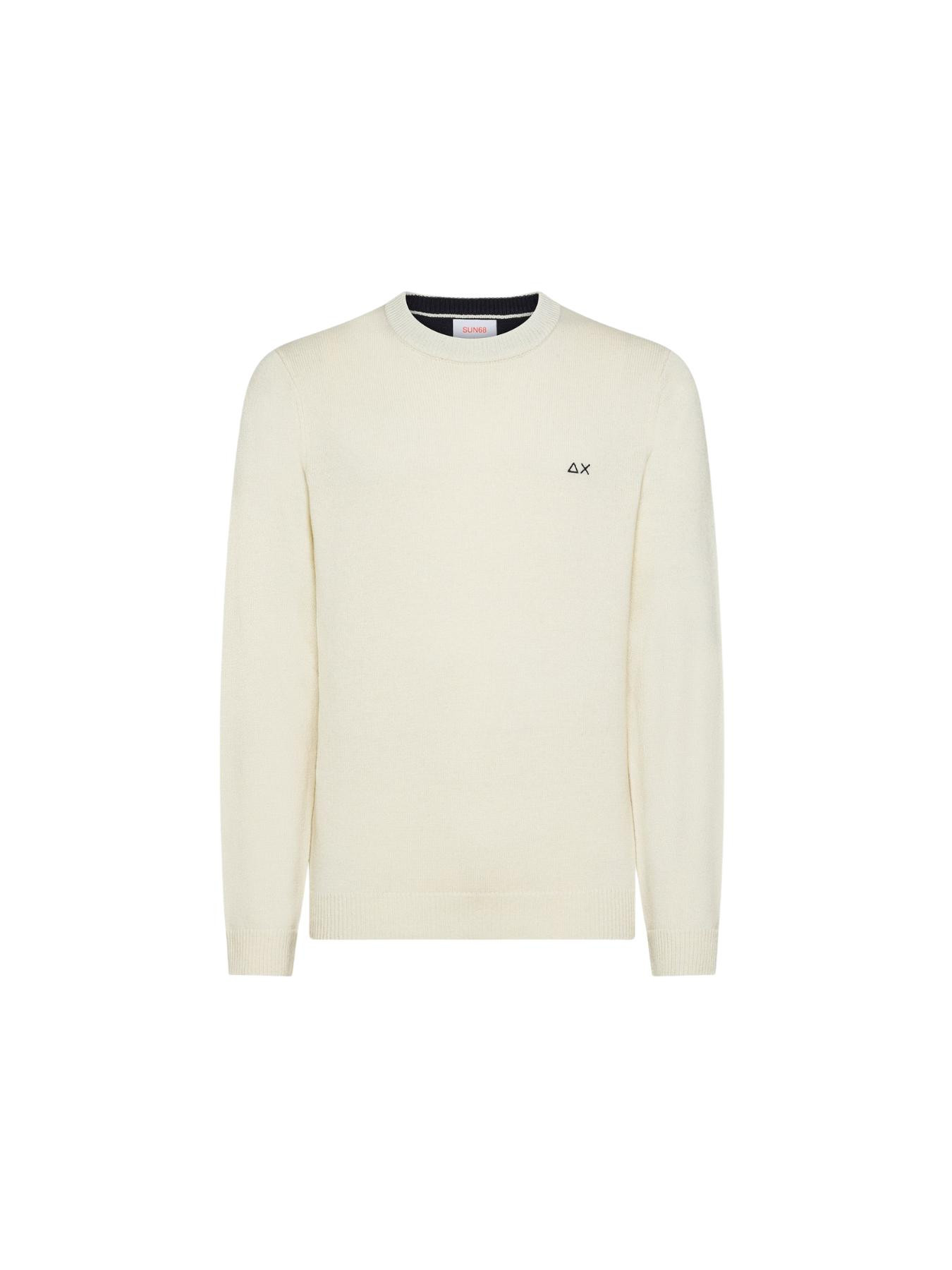 Sun68 – Maglia girocollo in lana e cashmere bianco panna