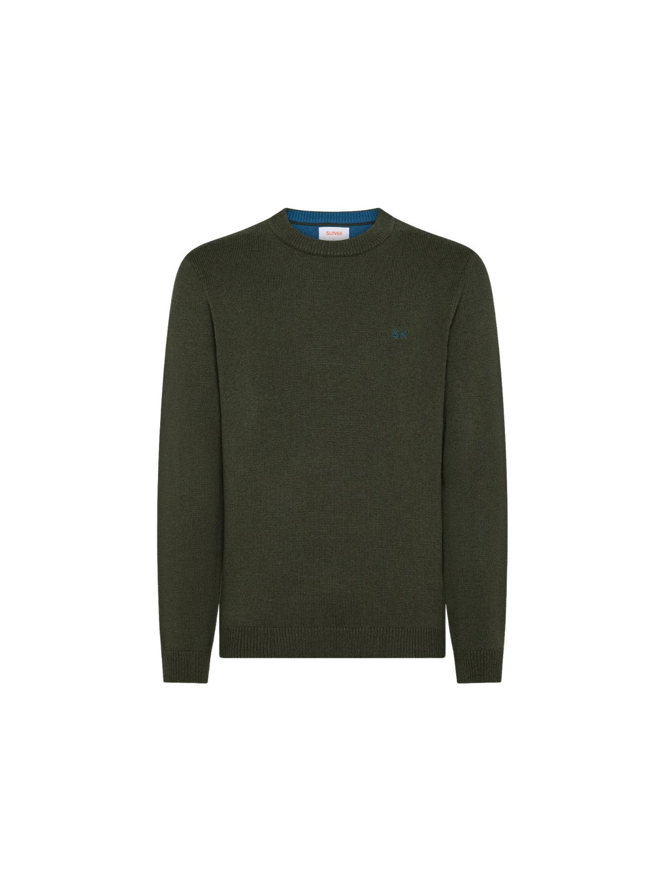 Sun68 – Maglia girocollo in lana e cashmere militare scuro