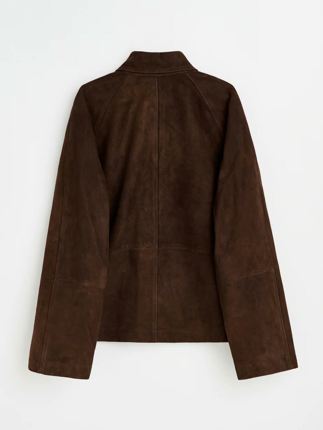 Cropped raglan sleeved suede jacket