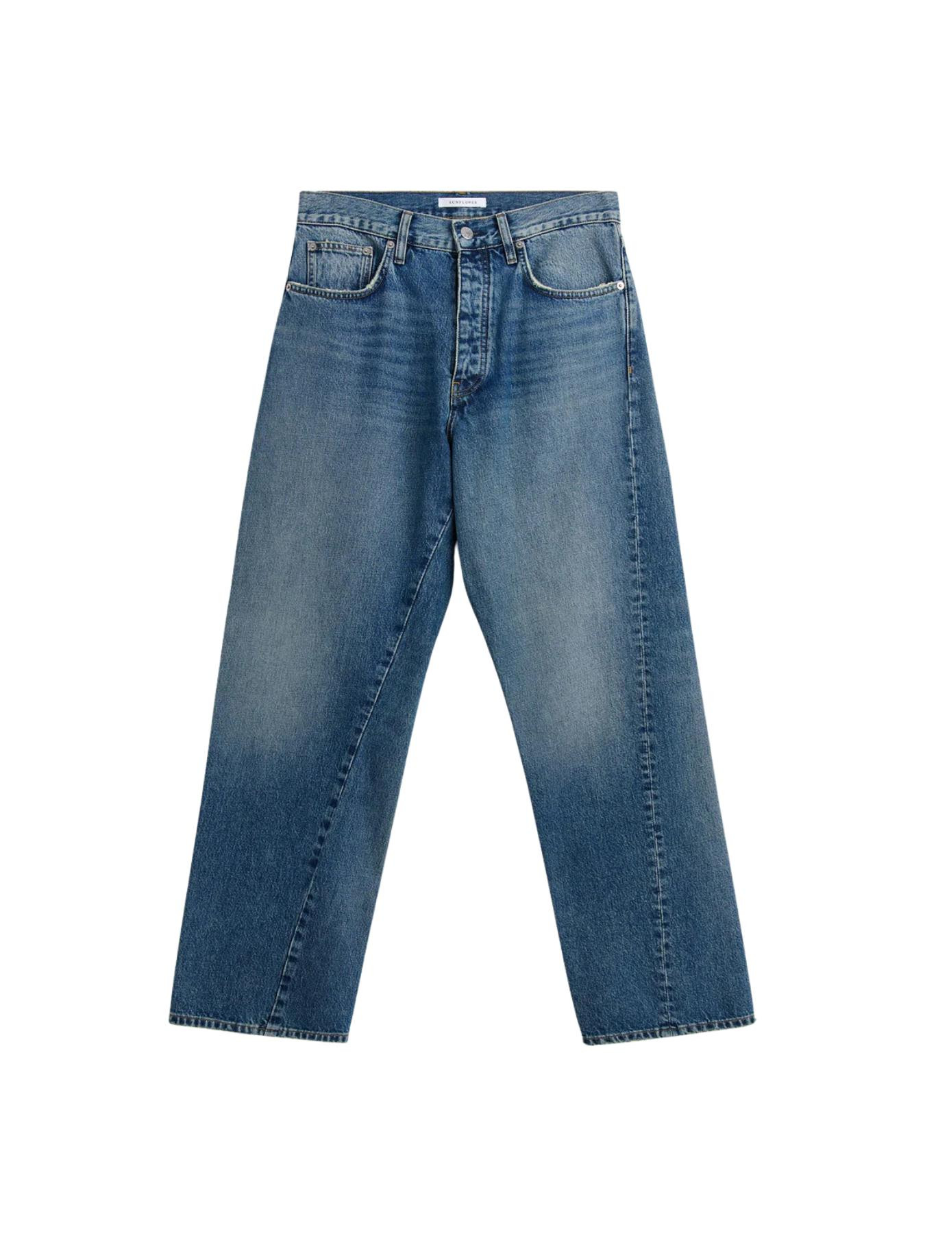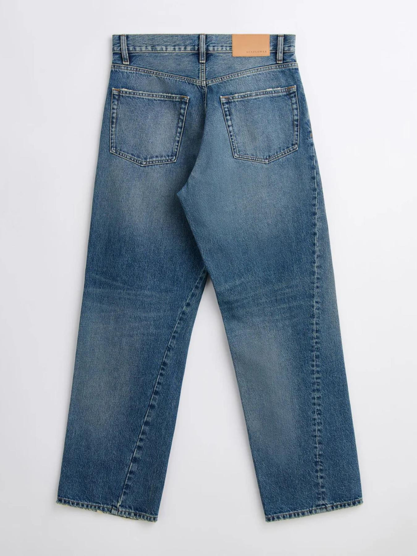 Wide fit denim in a 14 oz organic cotton indigo blue denim, twisted side seams.Vintage washed for a dark blue vintage feel Sunflower metal trimWide fit Twisted seams