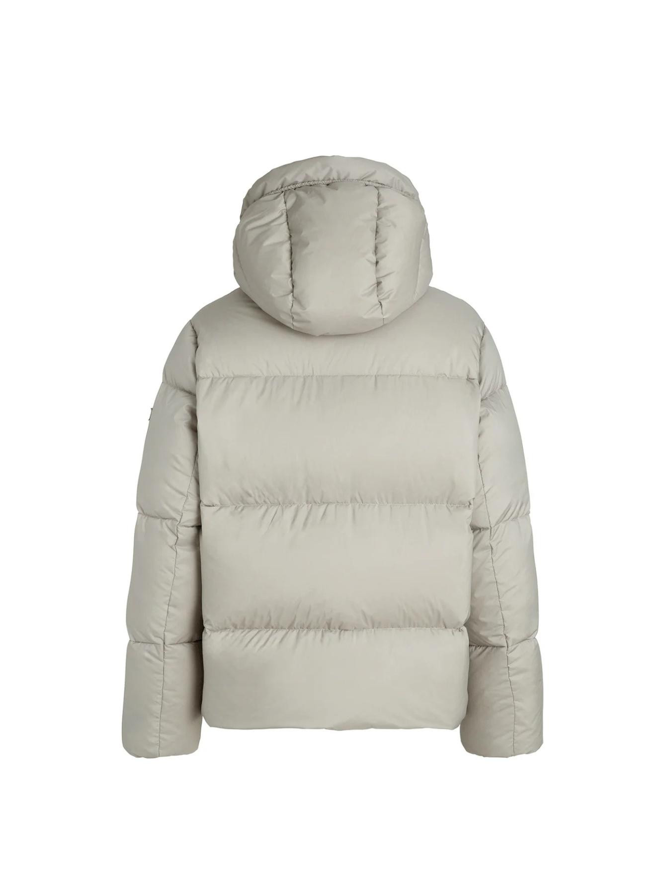 Piumino oversize caratterizzato da un volume generoso e da una silhouette squadrata, che incarna il fascino classico dellโouterwear imbottito. Quando aperto, i draft tubes โ elementi tipici dei sacchi a pelo โ fiancheggiano entrambi i lati della chiusura, aggiungendo non solo un dettaglio visivo distintivo ma anche un maggiore isolamento termico. Il design รจ volutamente minimale, con finiture e dettagli in toni coordinati per un look pulito ed essenziale. Un capo che bilancia funzionalitร e semplicitร contemporanea.