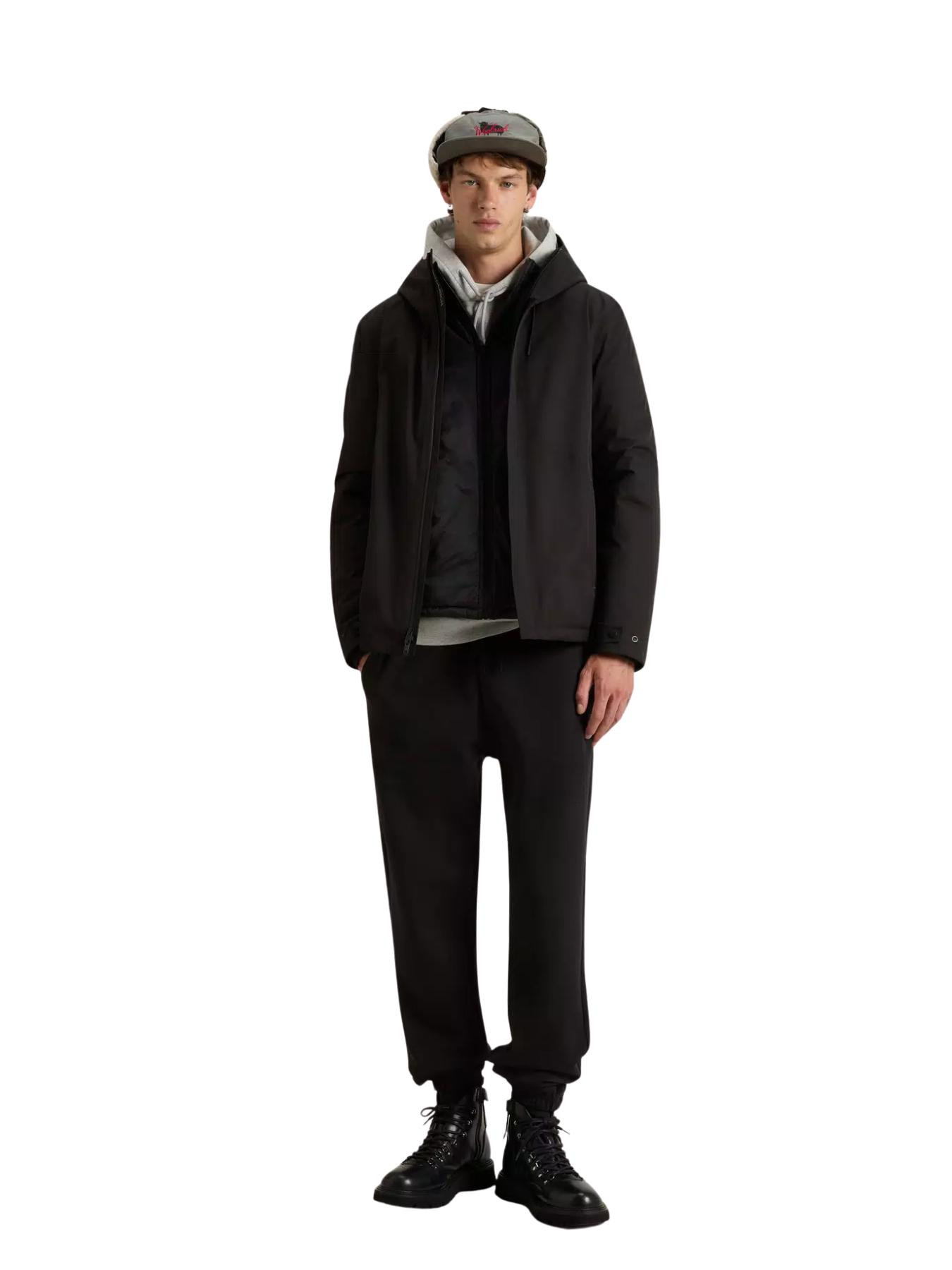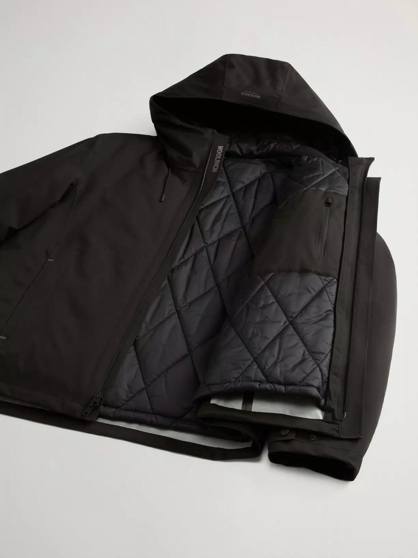 Progettata per garantire massima versatilitร e protezione, questa giacca 3 in 1 รจ realizzata in twill di poliestere a 2,5 strati, idrorepellente, resistente al vento e traspirante. Lo strato esterno รจ parzialmente nastrato per una protezione extra e presenta cappuccio regolabile, zip bidirezionale impermeabile parzialmente coperta da patta, due tasche con zip, polsini regolabili e dettagli riflettenti sui lati per una maggiore visibilitร al buio. Il design include una giacca interna rimovibile, imbottita e dotata di cappuccio, double face con un lato trapuntato e uno liscio a tinta unita. Ha tasche a filetto e tasca interna con zip sul lato trapuntato. ร collegata allo strato esterno tramite una zip centrale, un bottone a pressione sul cappuccio e passanti su polsini e collo. I due strati possono essere indossati insieme o separatamente, in base alle condizioni climatiche o allo stile desiderato.